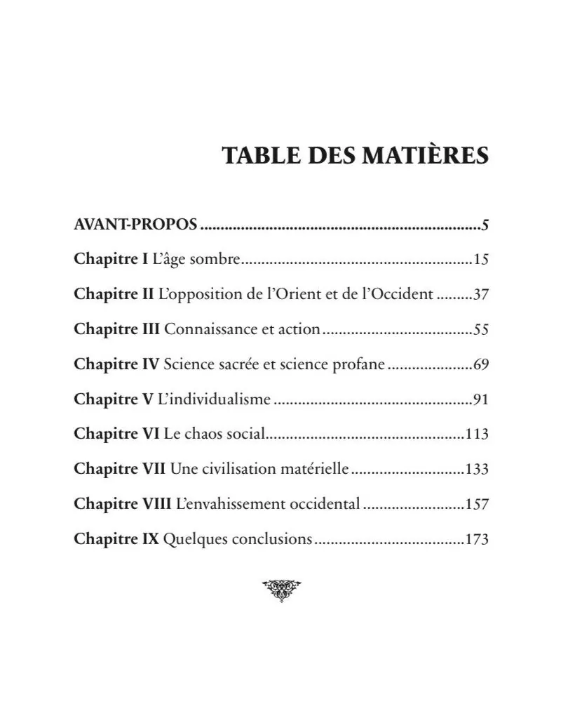 Dans l’état présent du monde, nous avons donc, d’un côté, toutes les civilisations qui sont demeurées fidèles à l’esprit traditionnel, et qui sont les civilisations orientales, et, de l’autre, une civilisation proprement anti-traditionnelle, qui est la civilisation occidentale moderne.